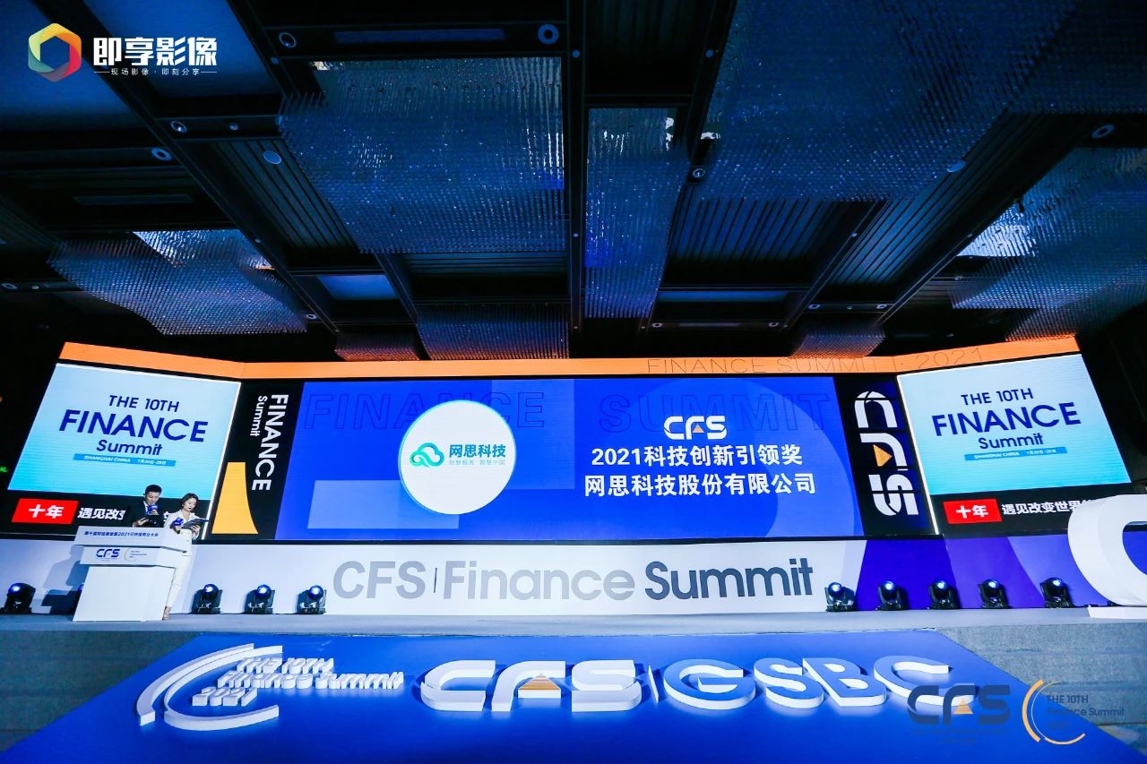 网思科技亮相CFS第十届中国财经峰会,斩获“2021科技创新引领奖”及“2021杰出数字先锋人物”双项大奖